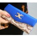 19cm (L) x 8.5cm (H). Snakeskin decorative pattern on back and lower front panel of wallet. Top front panel of wallet in colours available in black, blue, yellow, orange, brown, mint and watermelon. Decorative gold coloured front design. Silver coloured domed fastening. 5 sections for cards including a heart shaped clear window, in a pull out feature. 4 separate inside pockets including one clasp pocket. Clasp in gold colour. Inside watch material in brown. Inside zip pocket. - Reviews